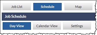 The Job Schedule provides a Day and Calendar view for viewing and modifying Technicians' assignments to jobs.