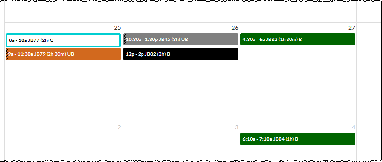 The Calendar Month view is a summary and all Job Tasks are allocated the same amount of space on the calendar.
