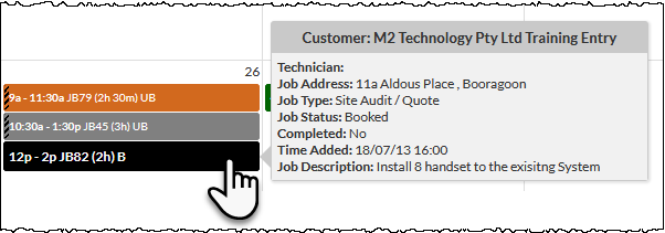 - Shaded left border - indicates that the job has a status other than Booked or Cancelled