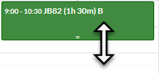 When hovering over a Job Task in Week view, a drag handle is displayed at the bottom of the calendar entry, and the cursor will change to resizer: