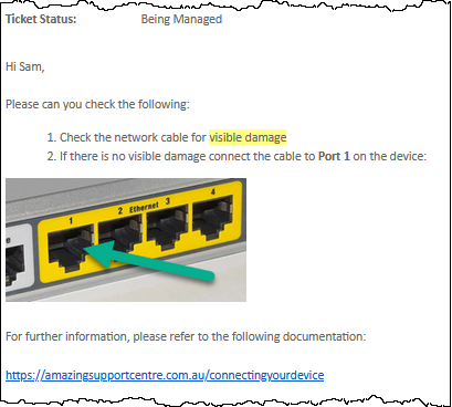 Images can be pasted into the ticket note. We strongly recommend ensuring that images are compressed, to reduce storage requirements, and to reduce the size of the email sent to the recipient.