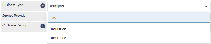 The Customer Group and Business Type fields on the Customer screen have been updated to support enhanced Search and Add in Place functionality. These fields now allow users to scroll through options, type to filter results instantly, or click the plus icon to create a new item directly from the field without leaving the current screen.