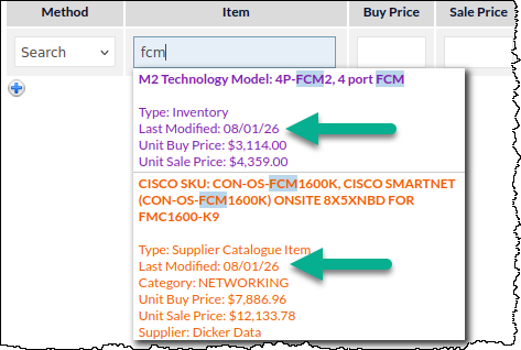 Supplier Catalogue items now display the date the price was last updated, where that information is available: