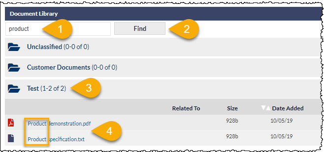 - Enter the name (or partial name) of the document into into the Find textbox
