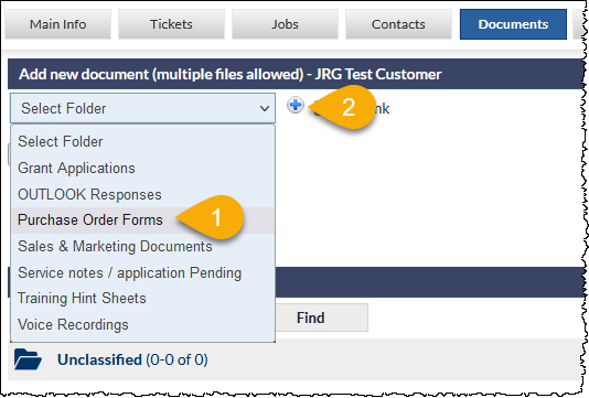 To create a new folder (i.e. the required folder is not listed in the Select Folders dropdown list), see article Customer Document Folders (Settings).