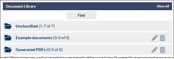 A folder can be renamed by clicking the edit (pencil icon), or deleted by clicking the delete (trash can) icon.