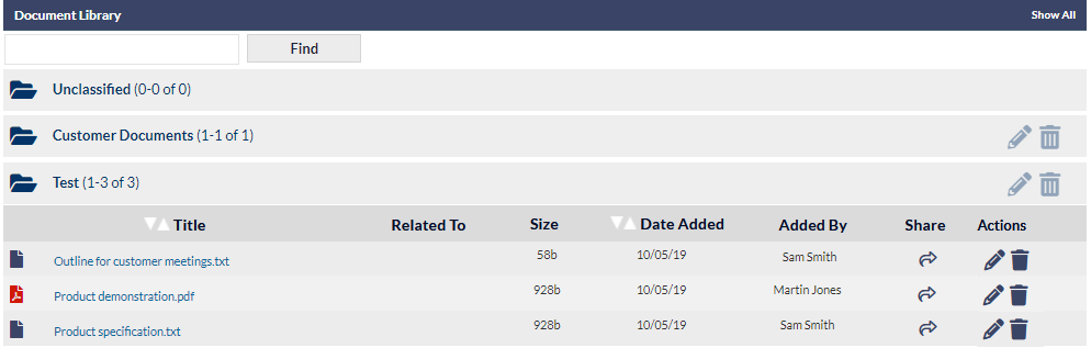 The CommTrak Documents Library is intended for storing your organisation's documents such as price lists, brochures, policy documents, etc. CommTrak documents can be selected for emailing to customers via Notes.
