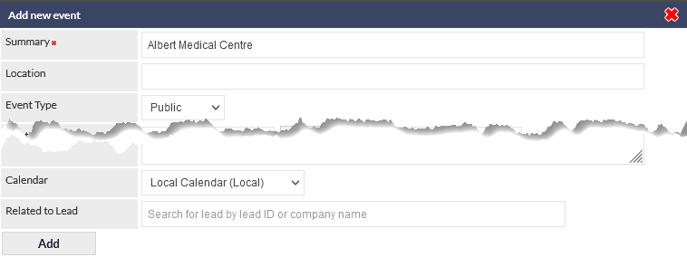 When you have ensured that you are viewing the correct calendar, click a day (or date, depending on your calendar view) to display the Add new event pop-up window: